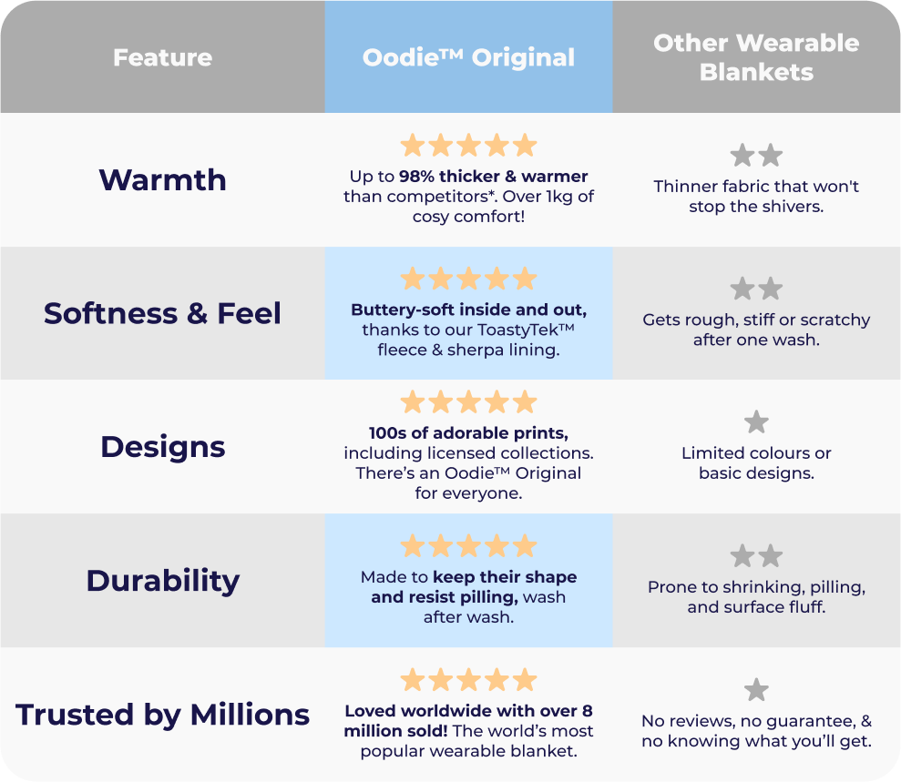 The Oodie™ Original is pure comfort. So soft, warm, and toasty, it feels like a hug you’ll never want to take off. Perfect for all of life’s cosy moments – from couch days and movie marathons, to camping trips and everything in between.
