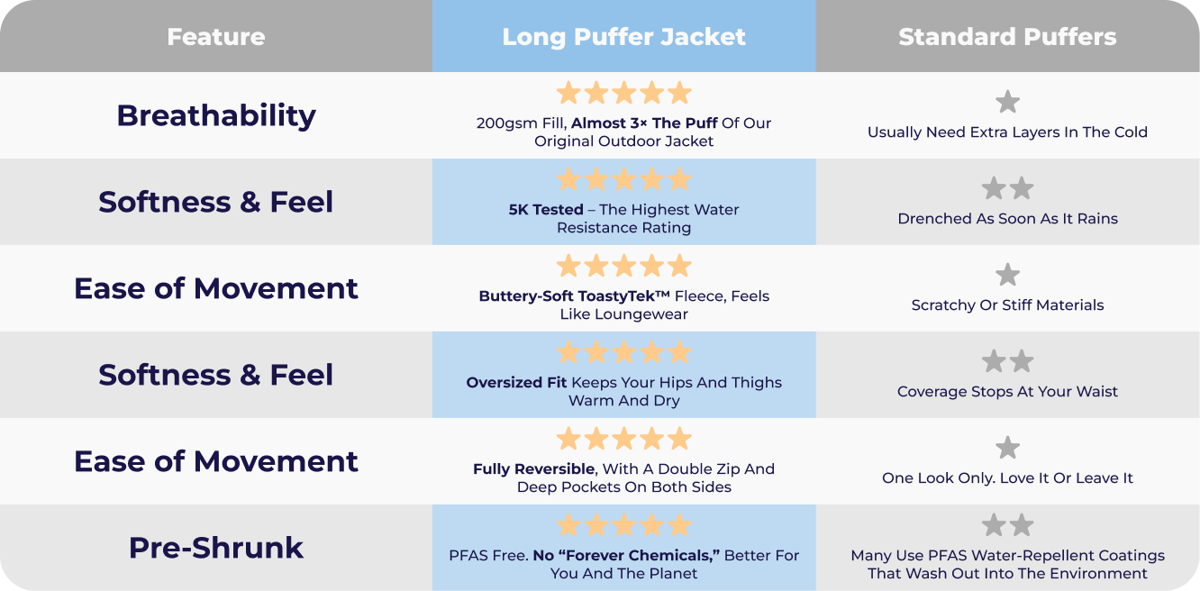 Almost 3x the puff of our original Outdoor Jacket. The 200gsm fill keeps you warm & cosy.