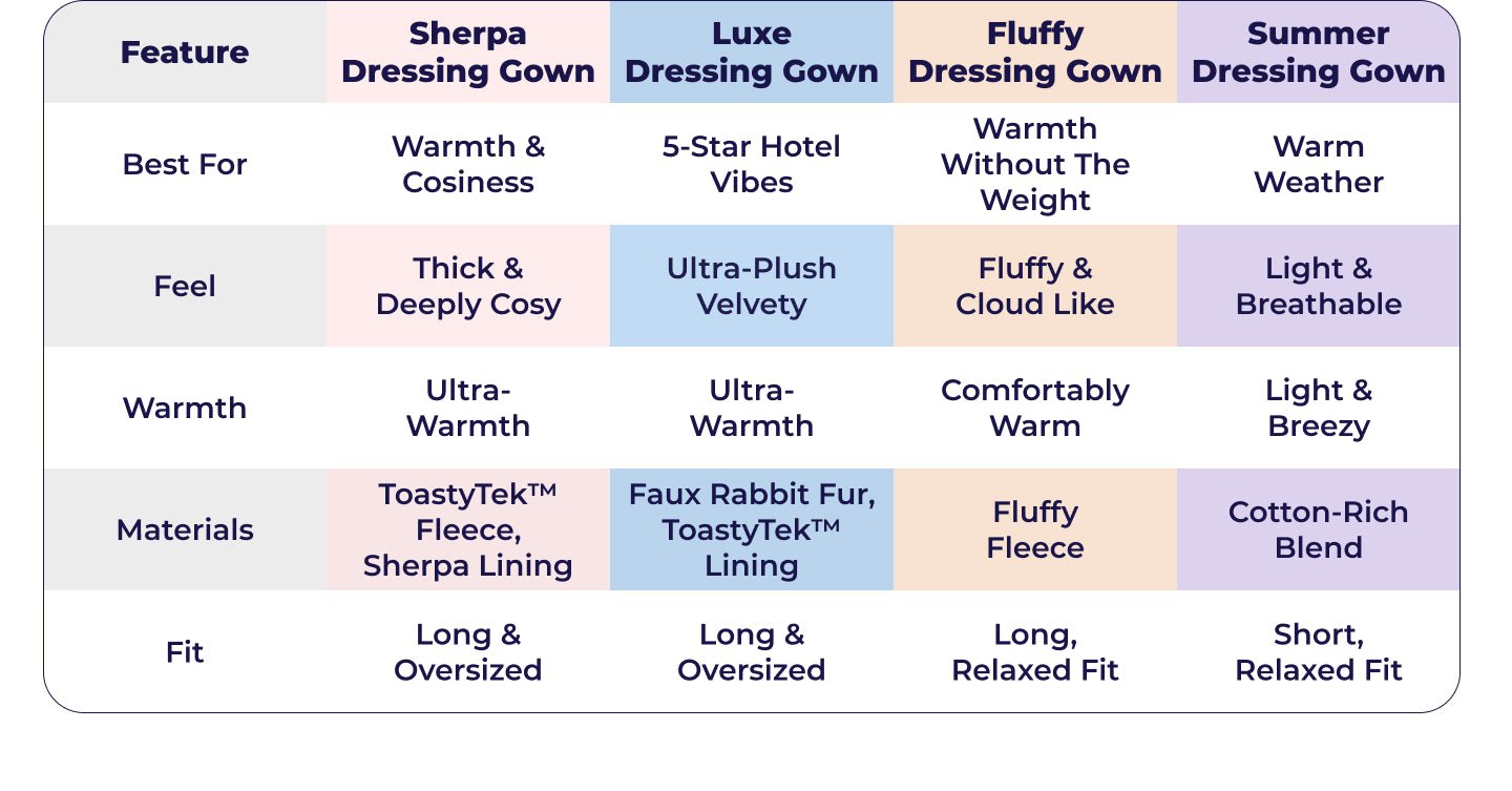 Our dreamy ToastyTek™ fleece on the outside and ultra-warm sherpa fleece on the inside create the softest self-care imaginable. Wrap yourself in two layers of warmth, comfort, and cloud-like softness from morning to night.