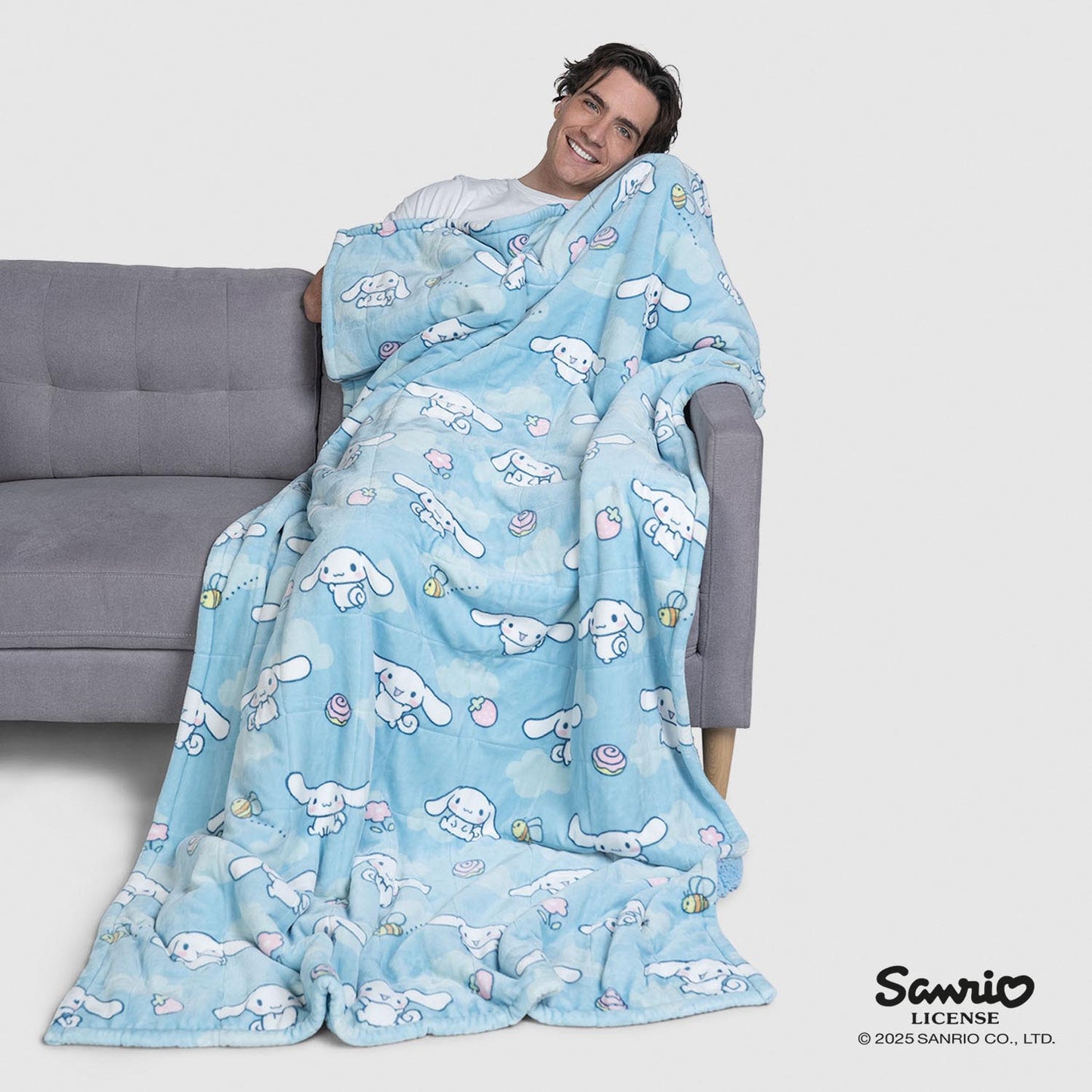 I love my oodie but don't really want to take it out the house so the blanket is perfect compromise. It is so warm. The cinnamoroll pattern on this blanket is so cute.