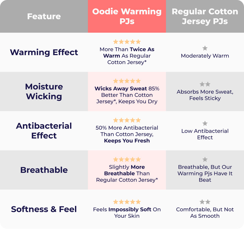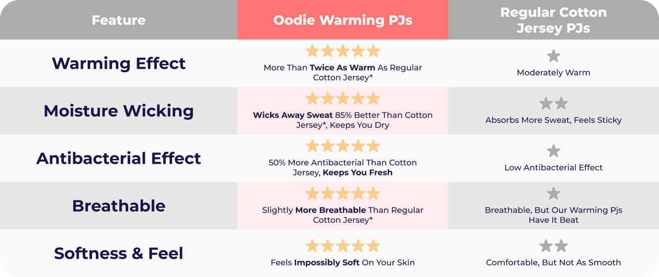 2x the warmth of regular cotton jersey PJs*, without feeling heavy.