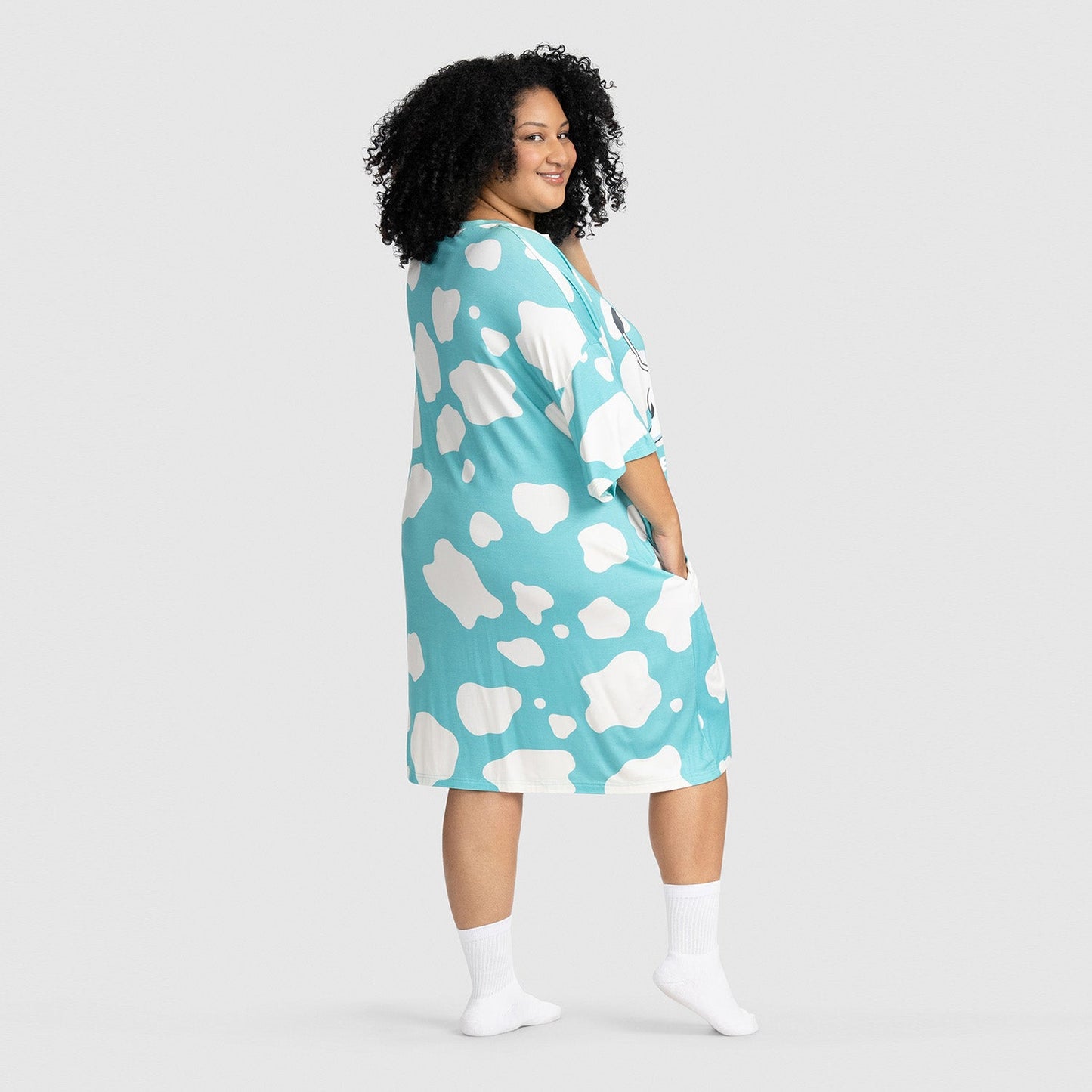 Both styles share the same oversized fit and features (like side pockets), but the fabric is where they differ. Our classic Sleep Tees are made from a lightweight bamboo blend – perfect for hot sleepers, warm climates, or summer nights.
