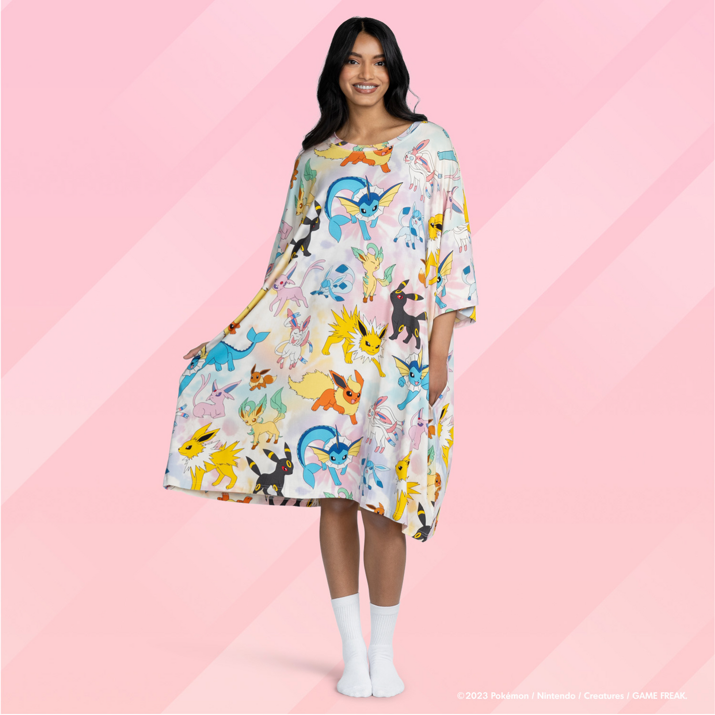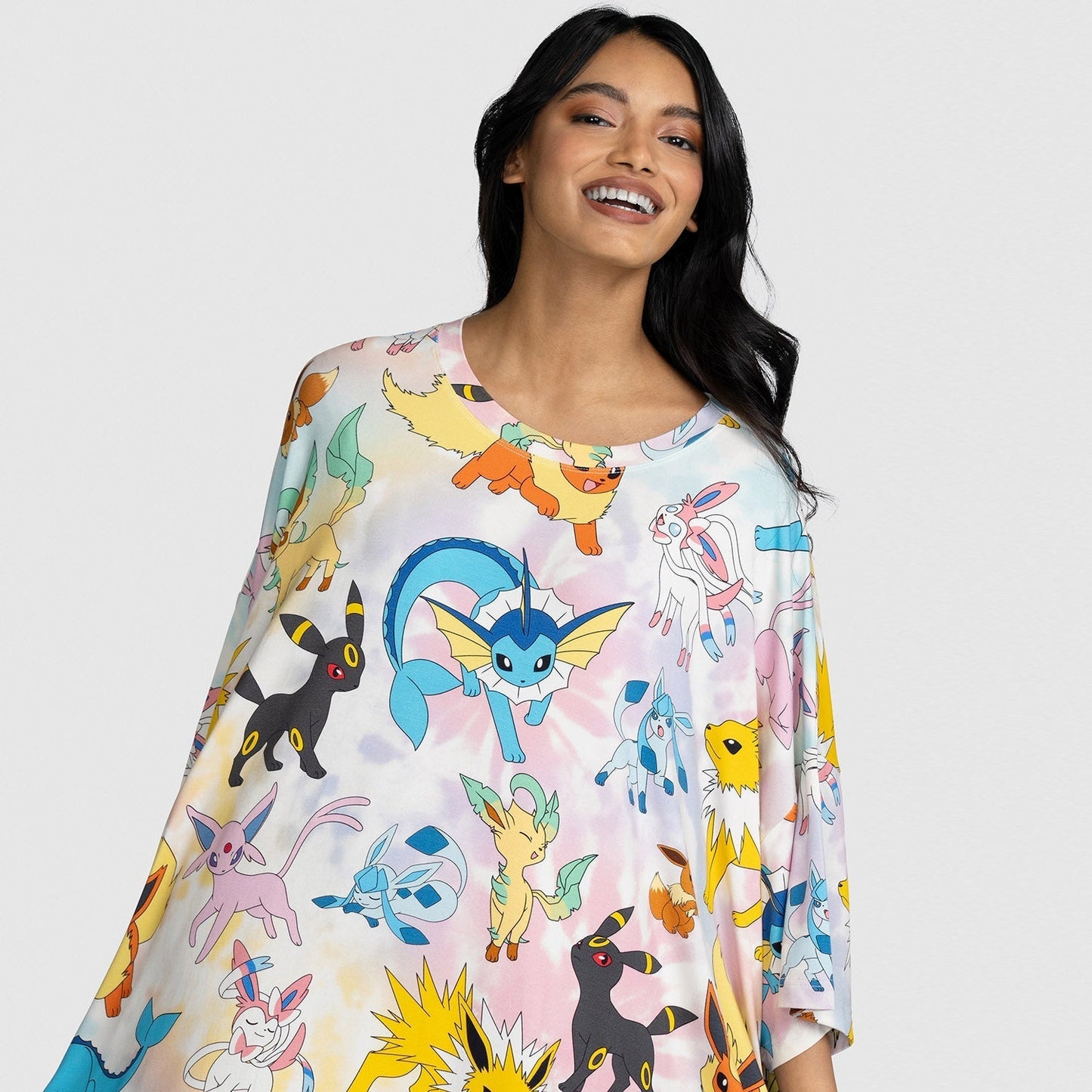 I love the roomy, cuddly Sleep Tee. The fabric is also really soft. Mind you someone else loves it too. Eevee with the Eevee sleep tee.