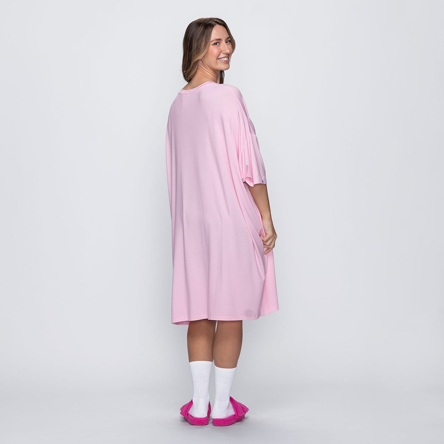 Both styles share the same oversized fit and features (like side pockets), but the fabric is where they differ. Our classic Sleep Tees are made from a lightweight bamboo blend – perfect for hot sleepers, warm climates, or summer nights.