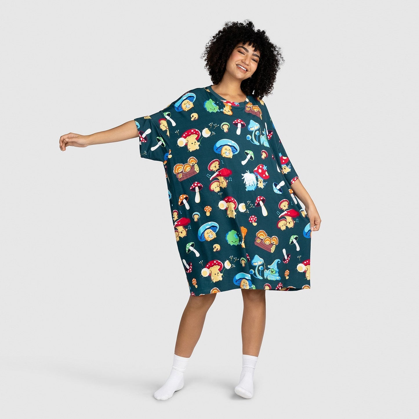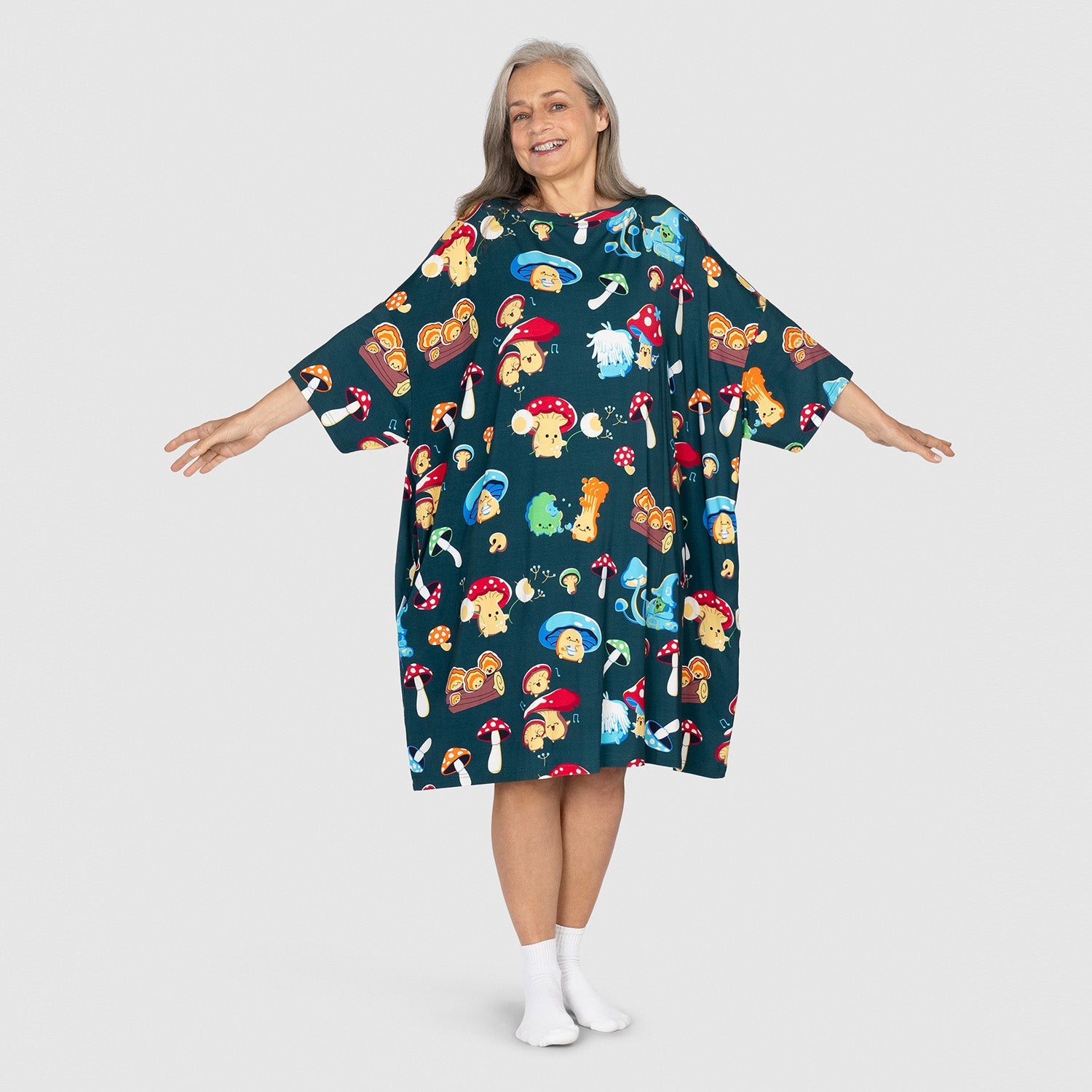 Both styles share the same oversized fit and features (like side pockets), but the fabric is where they differ. Our classic Sleep Tees are made from a lightweight bamboo blend – perfect for hot sleepers, warm climates, or summer nights.