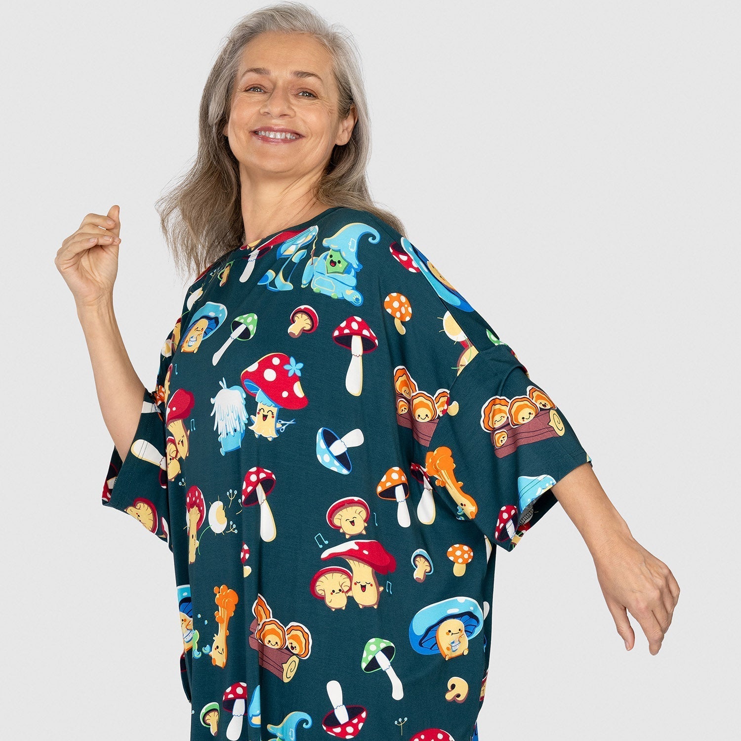 I have probably 9-10 Oodie shirts. This so far my favorite! Love the colors, I love mushrooms. It feels like Oodie switched the material they use because my last 2 shirts are thicker & better quality than my others