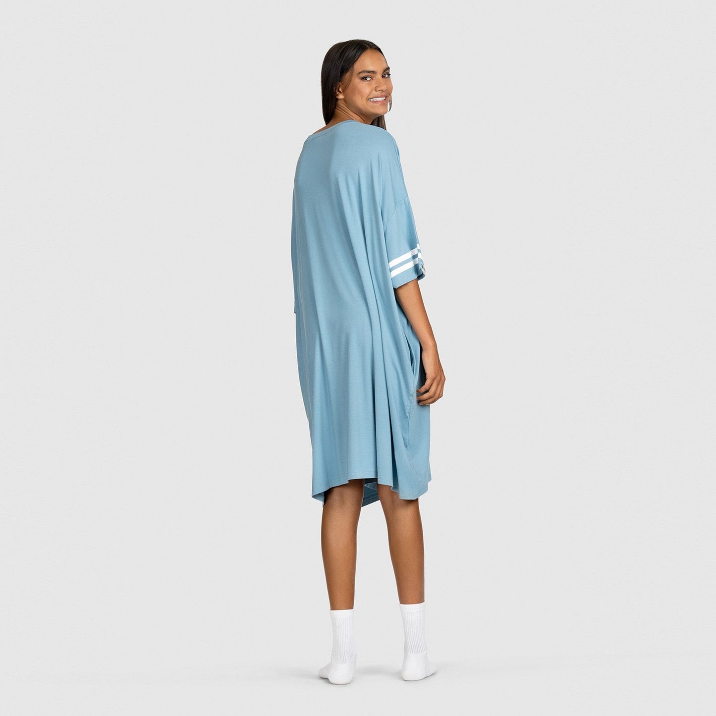 Both styles share the same oversized fit and features (like side pockets), but the fabric is where they differ. Our classic Sleep Tees are made from a lightweight bamboo blend – perfect for hot sleepers, warm climates, or summer nights.