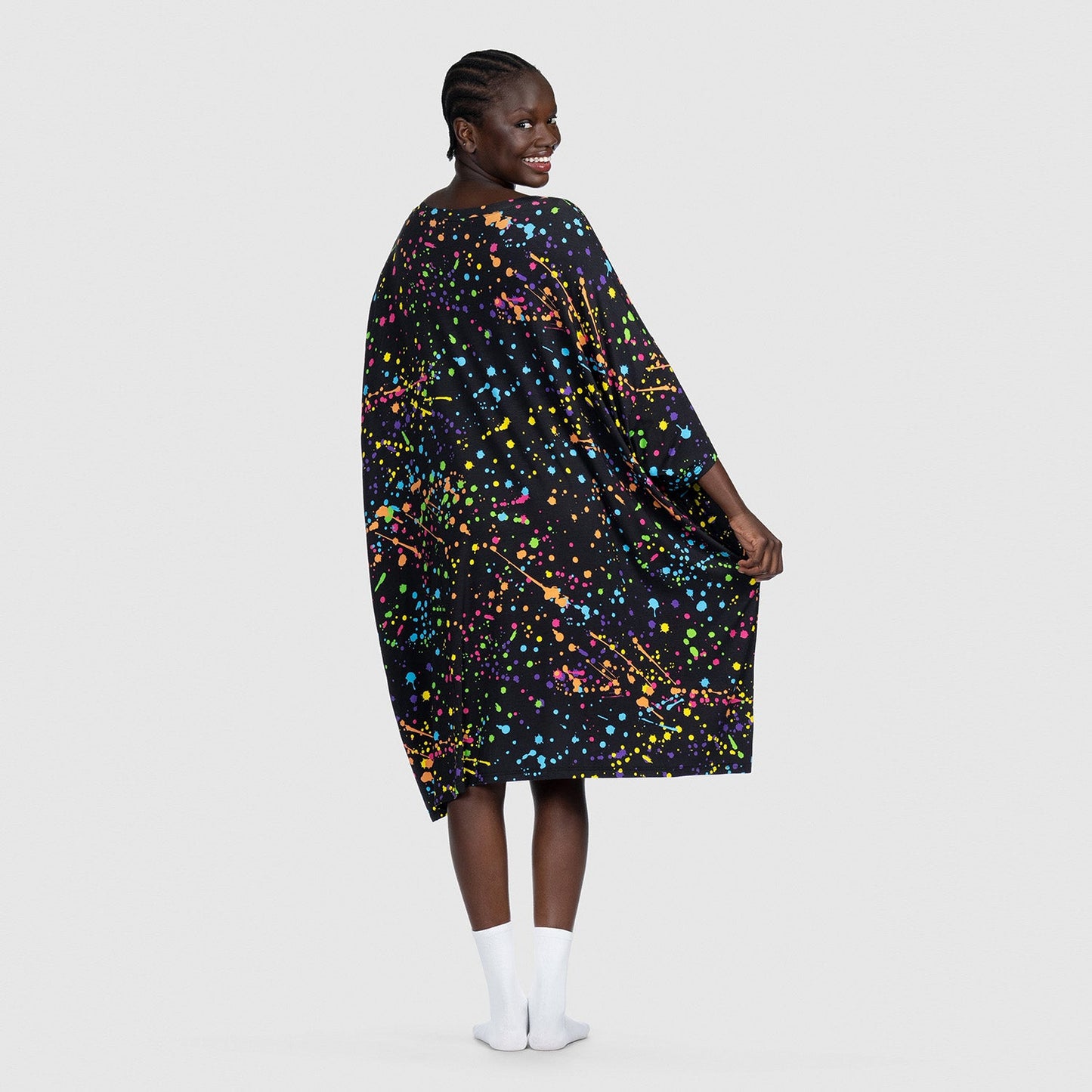 Both styles share the same oversized fit and features (like side pockets), but the fabric is where they differ. Our classic Sleep Tees are made from a lightweight bamboo blend – perfect for hot sleepers, warm climates, or summer nights.
